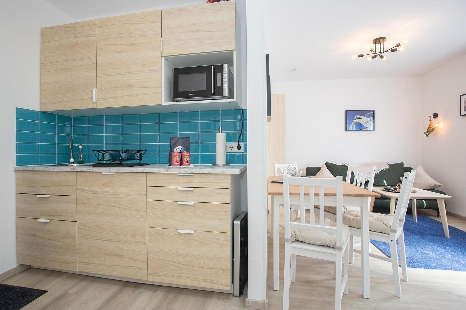 Moderne Einrichtung. Reinigungspaket. Saubere Bettwäsche und Handtücher steril verpackt. Waschmaschine vorhanden.